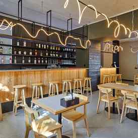 Бар Spichki на ул. Октябрьской, 19Б в Минске разместился прямо в сердце Октябрьской — улице современного искусства, вкусного стрит-фуда и атмосферных тусовок. Заведение получилось камерным и уютным: здесь бетон и дерево гармонично сочетаются с натуральным фактурами, большими окнами, легкой мебелью и обилием света. Словом, интерьер бара «Спички» создан по индивидуальному проекту, где большая часть предметов — ручная работа. Отдельного внимания заслуживает собственный уютный дворик с ретро лампами и гирляндами.