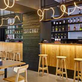 Бар Spichki («Спички») — это стильное пространство, где крафтовые настойки, сочные бургеры и хот-доги предложат по демократичным ценам, а неподдельный уют, расслабляющая атмосфера и внимательный сервис обслуживания достанутся в подарок каждому гостю.